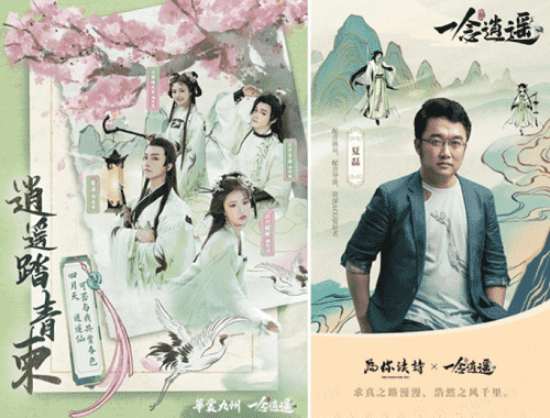 在游戏之外,,,《一念逍遥》一直致力于打造国风修仙原创IP,,,以音乐、、、漫画,,,,小说等衍生内容去延展丰富游戏内容。。。上线以来,,整整做了十首歌,,,小说应该也是喜马拉雅平台今年游戏品类小说收听量Top1的作品;而在营销的内容传播上,,,,《一念逍遥》也一直秉承比较国风的基调,,传递诗词、、文化内涵,,,如如清明节定制汉服合作,,,,传递中国传统的清明踏青、、、、清明诗会文化。。。。